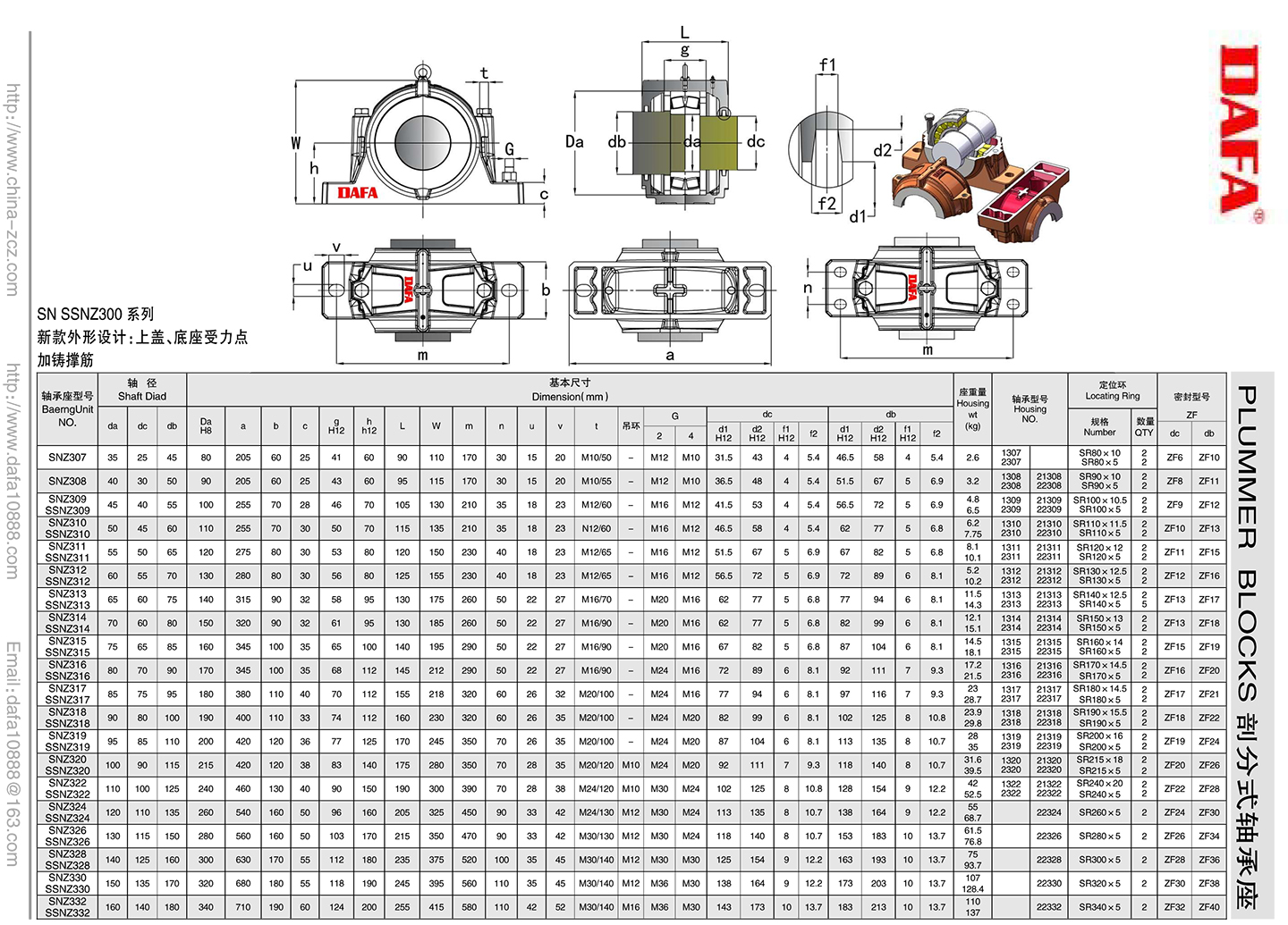 SNZ300系列轴承座型号、参数详情